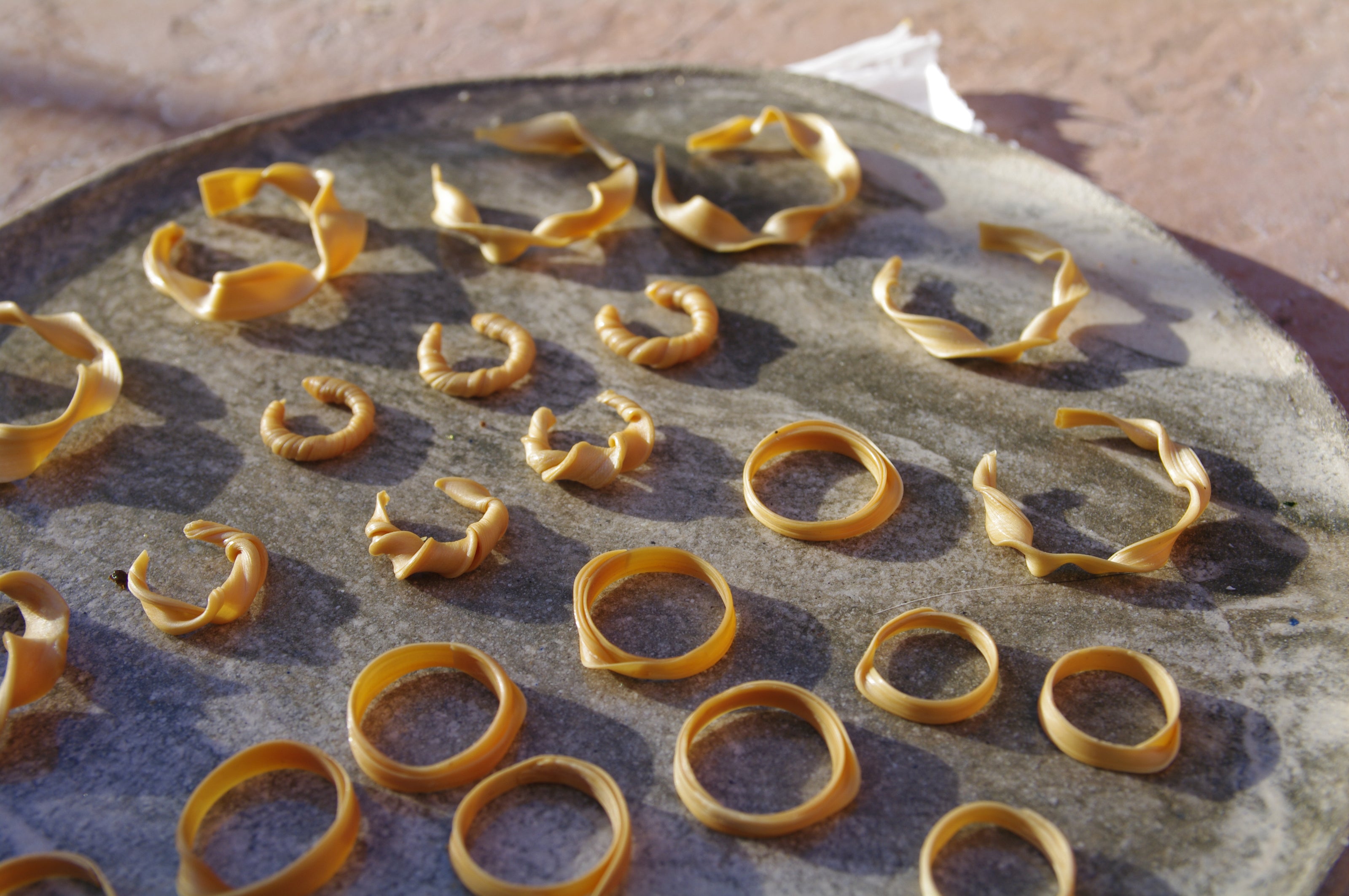 Il s'agit d'élaborer une cire aux propriétés uniques, à base de cire d'abeille et de résine de pin. En la réchauffant lentement puis en la malaxant dans un mouvement particulier, on obtient une matière organique et fluide incroyablement délicate.