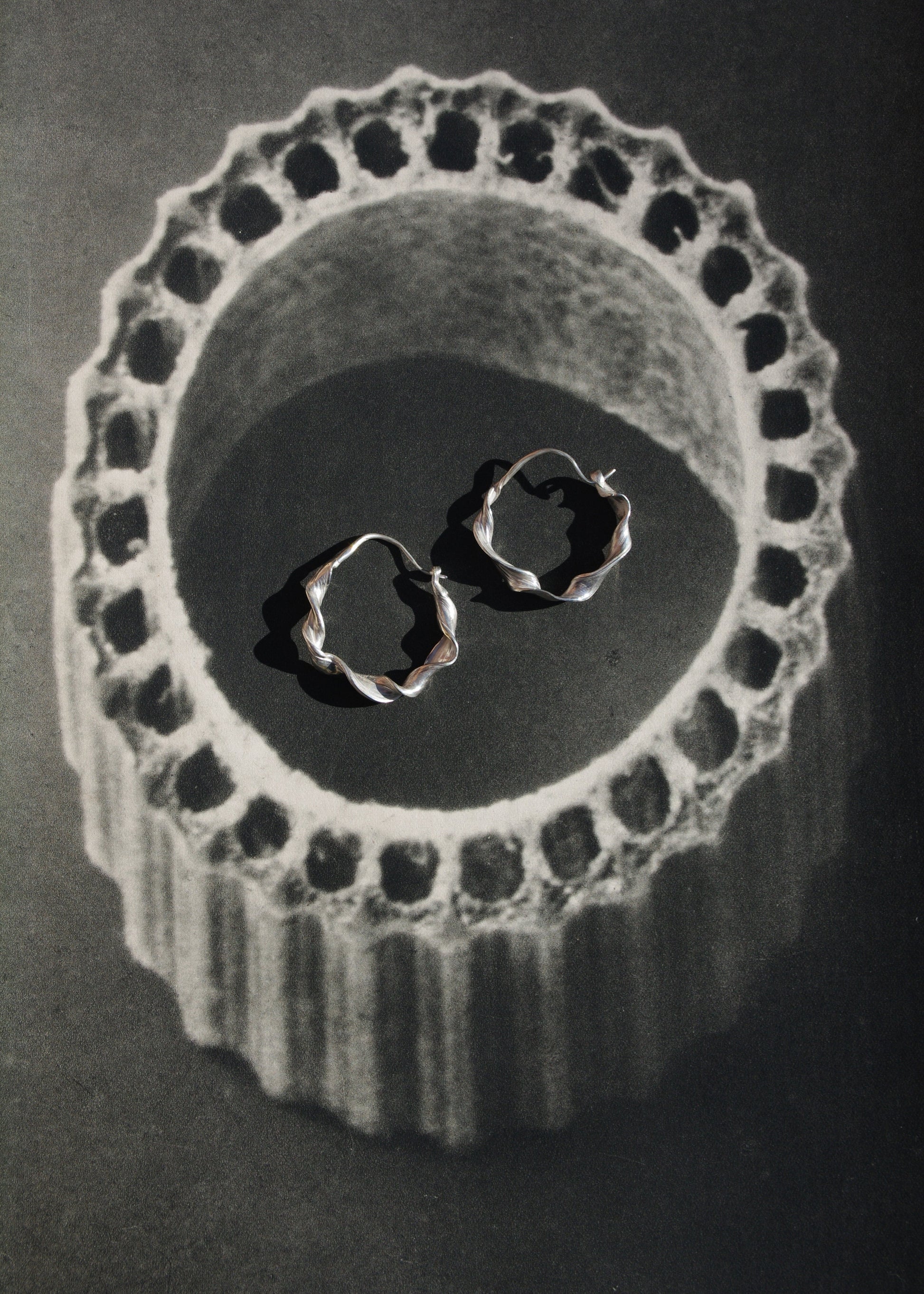 Boucles d'oreilles organiques façonnées selon la technique traditionnelle de cire perdue japonaise Mitsuro Hikime.
